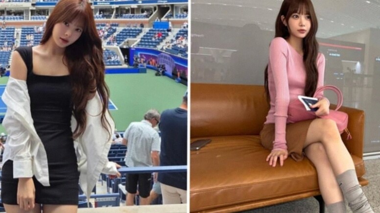 Penampilan lain yang sering dipilih Eunchae adalah mini dress hitam berbentuk square neck yang pas di badan. Kemeja putih oversized yang dipakai secara santai menambah unsur trendi tanpa ribet. Sneakers putih menjadi pilihan alas kaki yang praktis dan tetap menonjolkan kesan feminin.