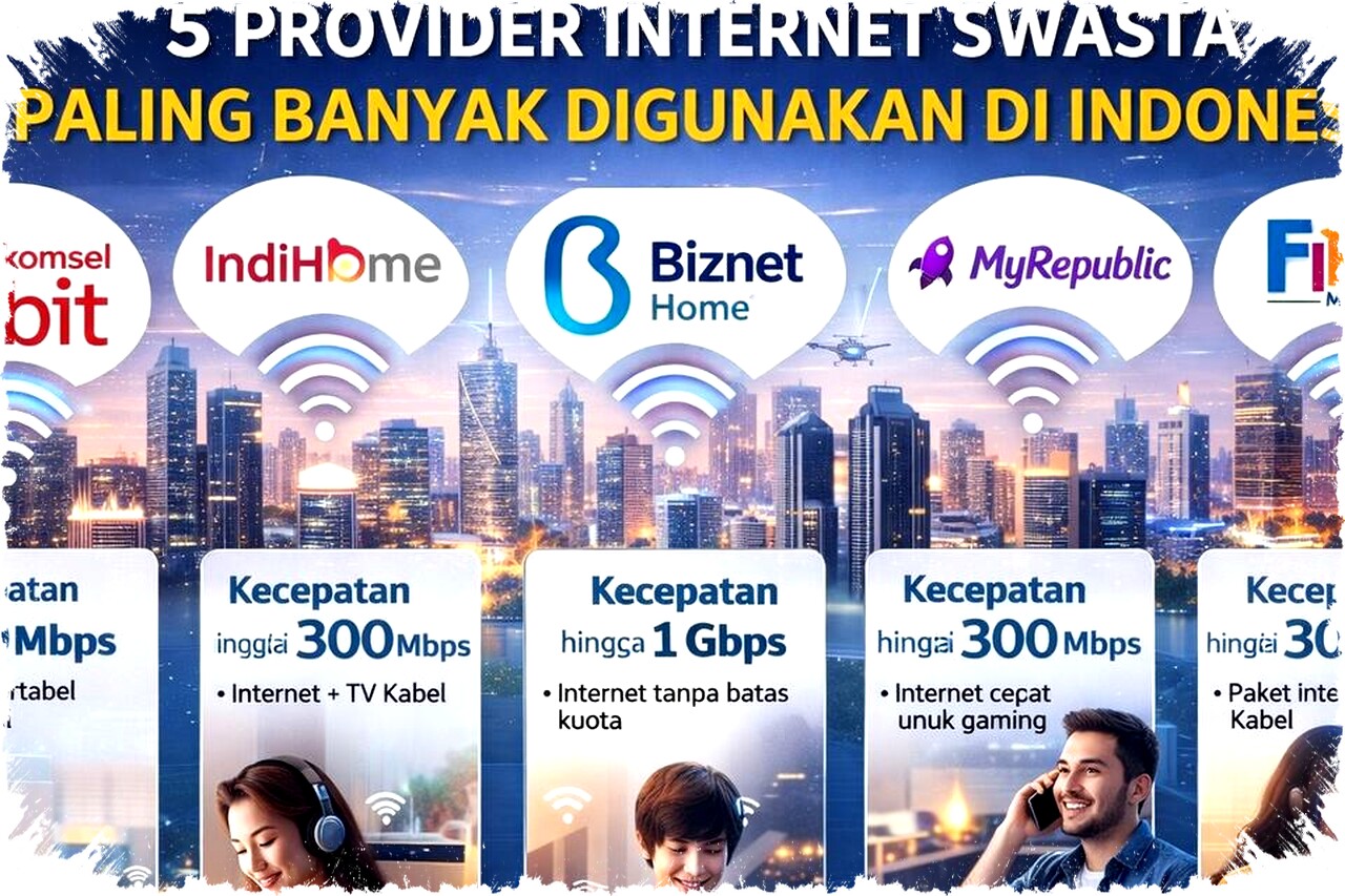 Berikut ini adalah lima provider internet swasta terpopuler di Indonesia yang unggul dalam hal kecepatan dan kualitas jaringan. Masing-masing memiliki kelebihan yang dapat disesuaikan dengan kebutuhan pengguna, mulai dari paket rumah tangga hingga penggunaan korporat.