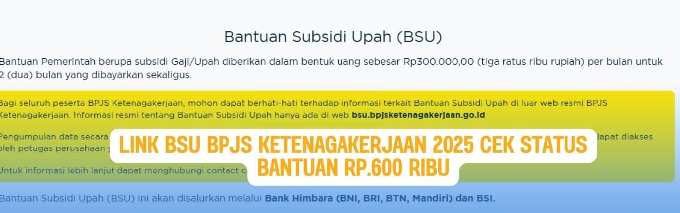 Link BSU BPJS Ketenagakerjaan 2025: Cek Status Bantuan Rp600 Ribu Sekarang