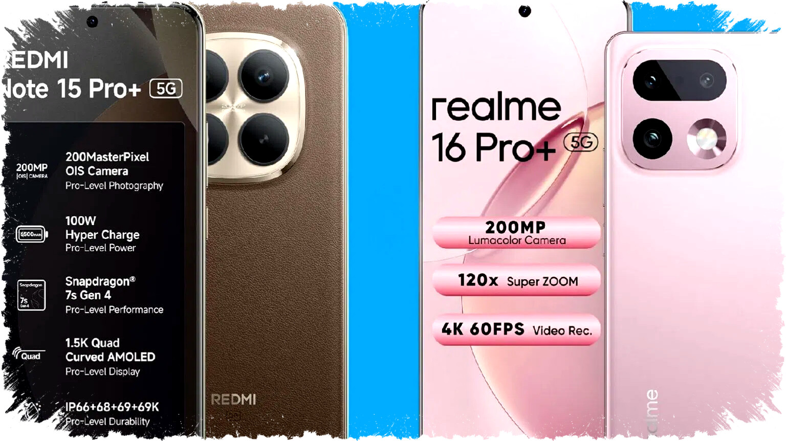 - Baterai: Realme 16 Pro+ 7.000 mAh, Redmi Note 15 Pro+ 6.500 mAh.