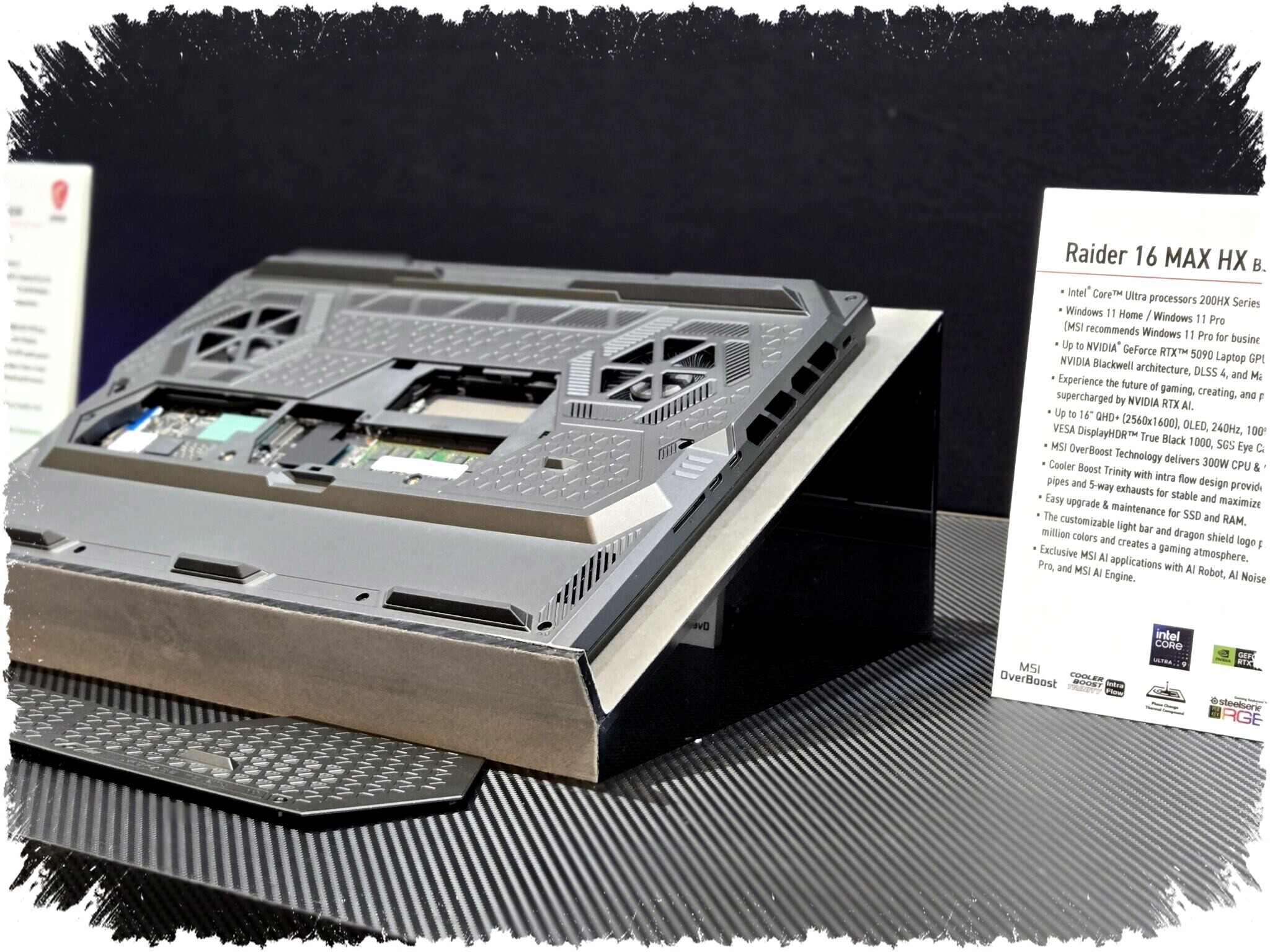 Tidak hanya kemudahan upgrade, Raider 16 HX Max juga dibekali hardware terkini seperti prosesor Intel Arrow Lake-HX dan kartu grafis Nvidia Blackwell terbaru. Sistem pendinginan laptop ini juga mengalami peningkatan signifikan agar dapat menurunkan suhu komponen saat beban kerja tinggi. Desain material dan ventilasi yang diperbarui memungkinkan perangkat menjalankan performa maksimal tanpa risiko overheating.