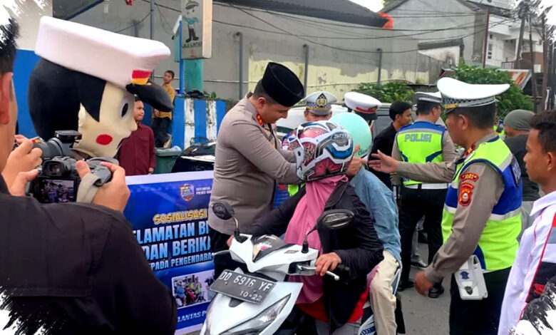 Polres Gowa dan Asmo Sulsel Bagikan Helm Gratis, Teguran Simpatik Gantikan Tilang Langsung