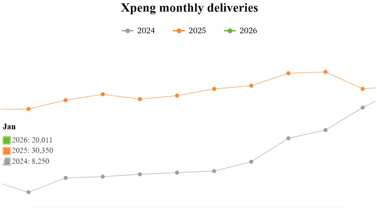 Data pengiriman kendaraan Xpeng selama tiga tahun terakhir menunjukkan fluktuasi yang cukup besar. Berikut data pengiriman pada bulan Januari: